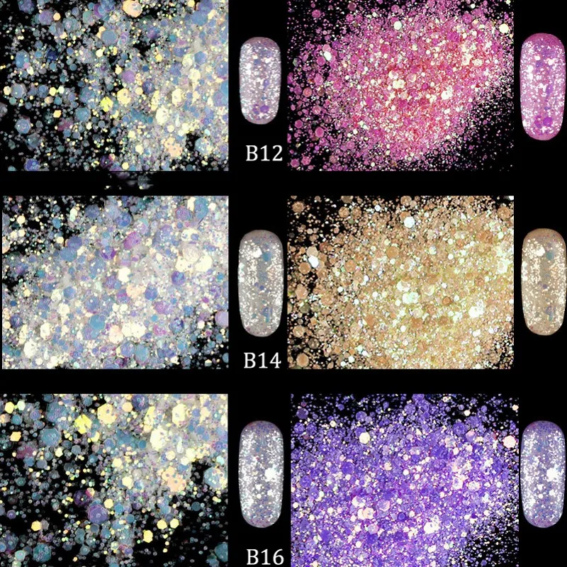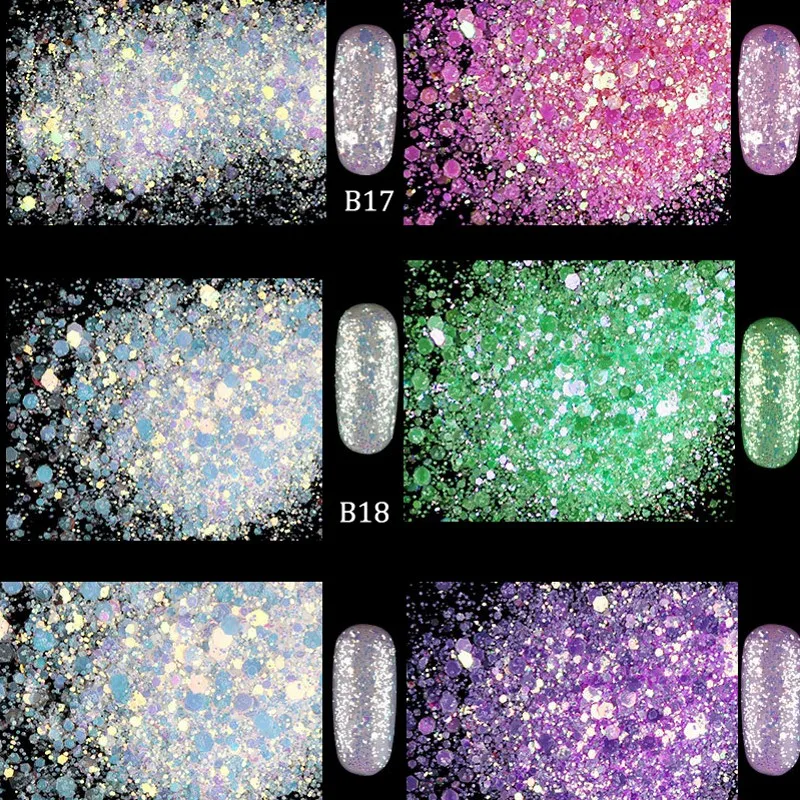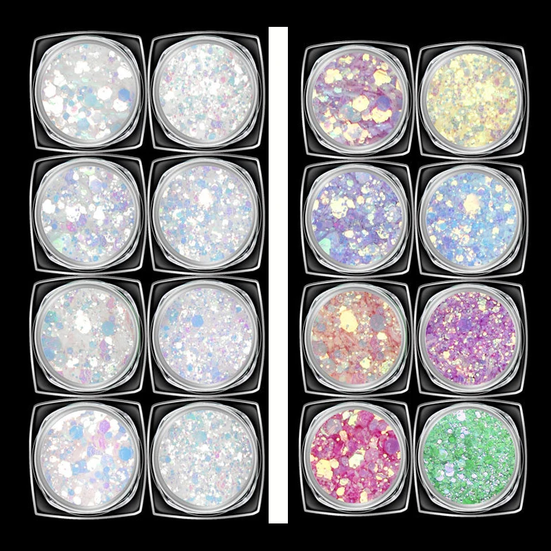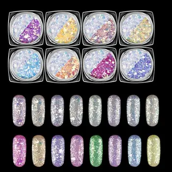 Special Offer Nowy!!! 1 Partia = 8 Pudełek Brokat Fosforowe Cekiny Syrenka Opalizujący Brokat Do Dekoracji Paznokci Proszek Pył Do Akrylu Lakier żelowy UV DMT08 # Discount 31% Today!