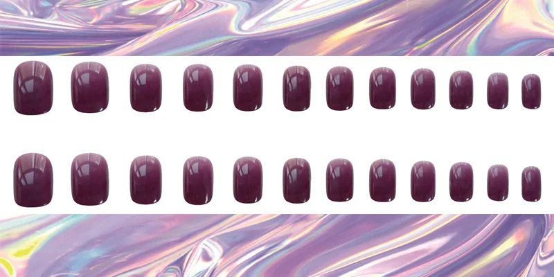 Special Offer 24 Sztuk/pudło Pełna Pokrywa Krótkie Sztuczne Paznokcie Czysty Fioletowy Błyszczące Urocze Kolorowe Sztuczne Paznokcie Pełne Owinięte Porady Francuski Styl Discount 45% Today!