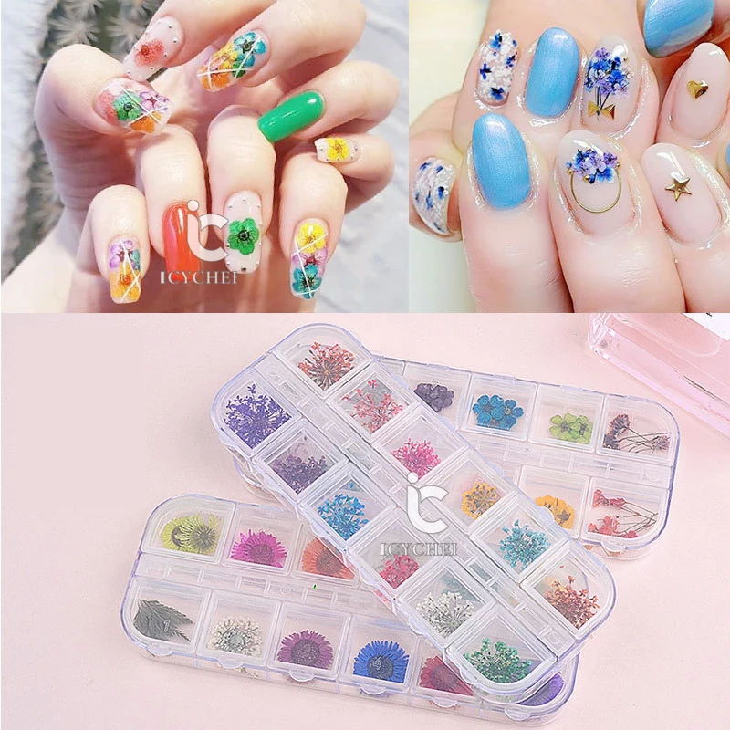 . (Zniżka 5%) Skup ICYCHEER Kolorowe 3D Urządzone 12 Styl Prawdziwe Suszone Kwiat Na żel UV Tipsy Akrylowe DIY Art Porady Nail Art Dekoracji Najtaniej Ceny.