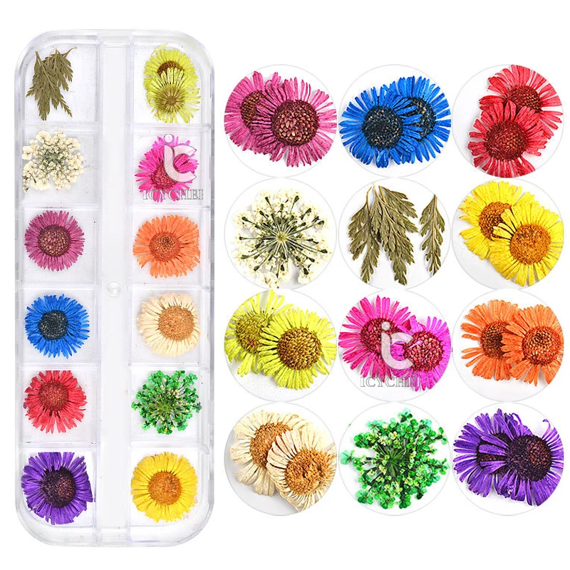 Special Offer ICYCHEER Kolorowe 3D Urządzone 12 Styl Prawdziwe Suszone Kwiat Na żel UV Tipsy Akrylowe DIY Art Porady Nail Art Dekoracji Discount 5% Today!