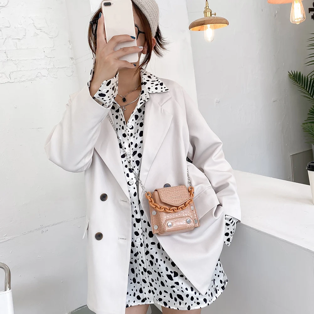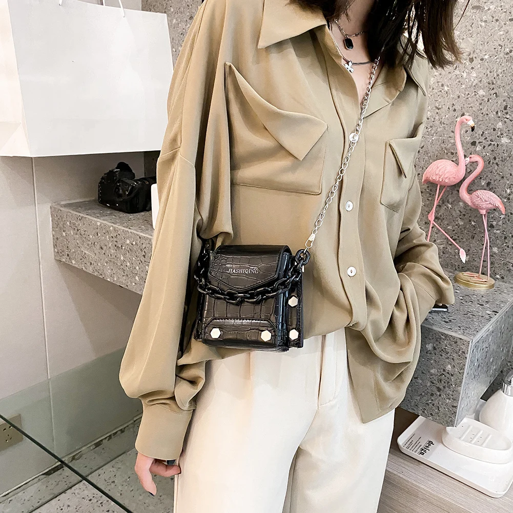Special Offer Moda Alligator PU Skóra Kobiety Mini Torba Na Ramię Kobieta Akrylowy łańcuch Solid Color Mała Torebka Torebka Koraliki Decor Etui Discount 50% Today!