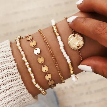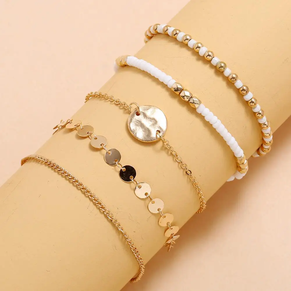 . (Zniżka 25%) Skup DIEZI 5 Sztuk/zestaw Handmade Czeski Vintage Złoty łańcuch Bransoletki Bransoletki Okrągły Urok Bransoletka Z Paciorkami Zestawy Dziewczyny Kobiety Biżuteria Najtaniej Cena.