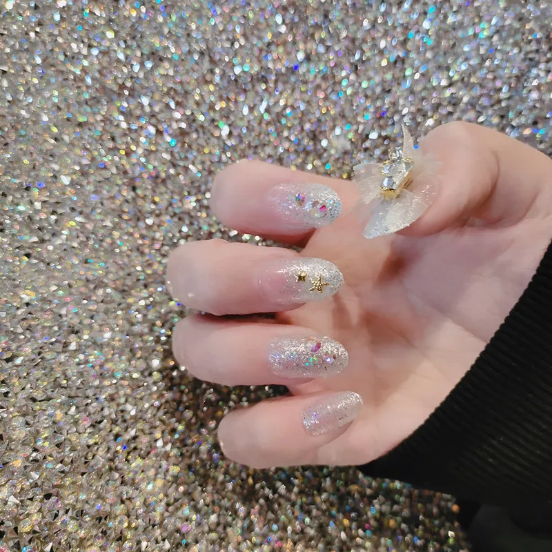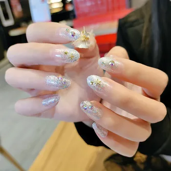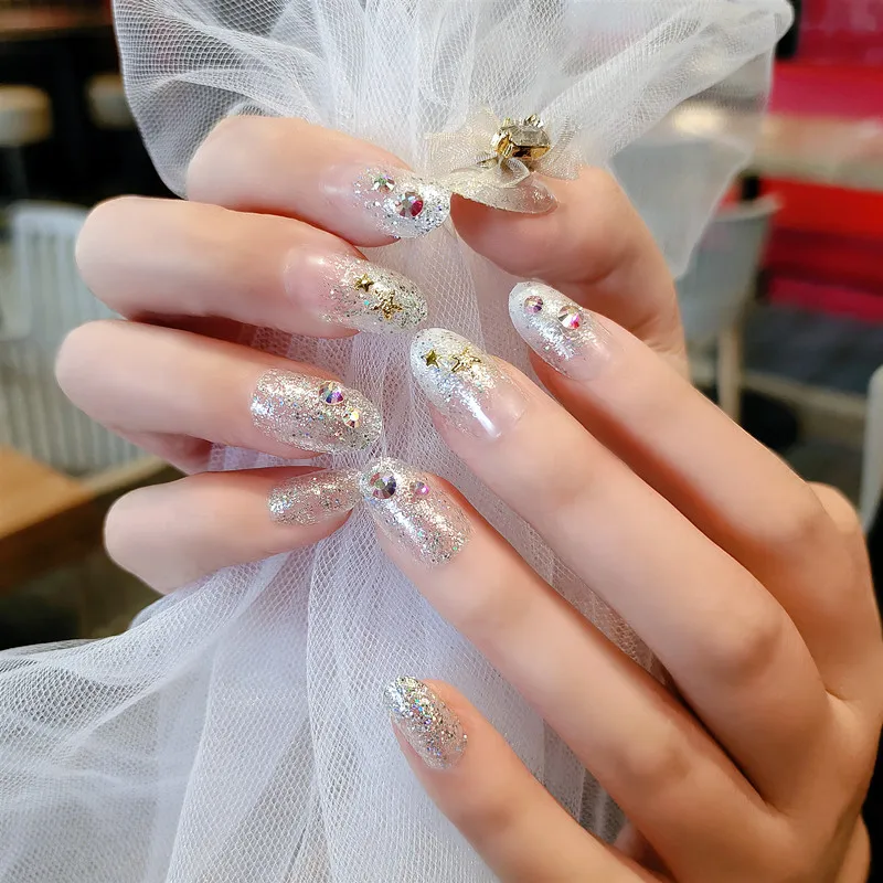 Special Offer 24 Sztuk Srebrny Brokat W Proszku Zdobione Owalne Gradient Fałszywe Paznokcie Odpinany Styl ślubny Noszenie Prasy Na Sztuczne Paznokcie Manicure Discount 20% Today!