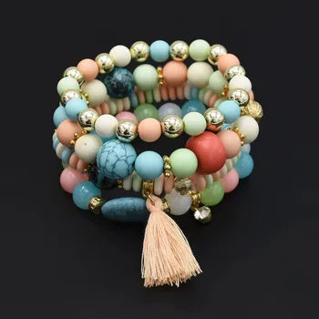 Special Offer Wiosna Lato Moda Damska Bransoletka Zestaw 4 Sztuk/partia Czeski Urok Akrylowy Koralik Kryształ Tassel Bransoletka Biżuteria Dla Pani Mężczyzn Discount 40% Today!