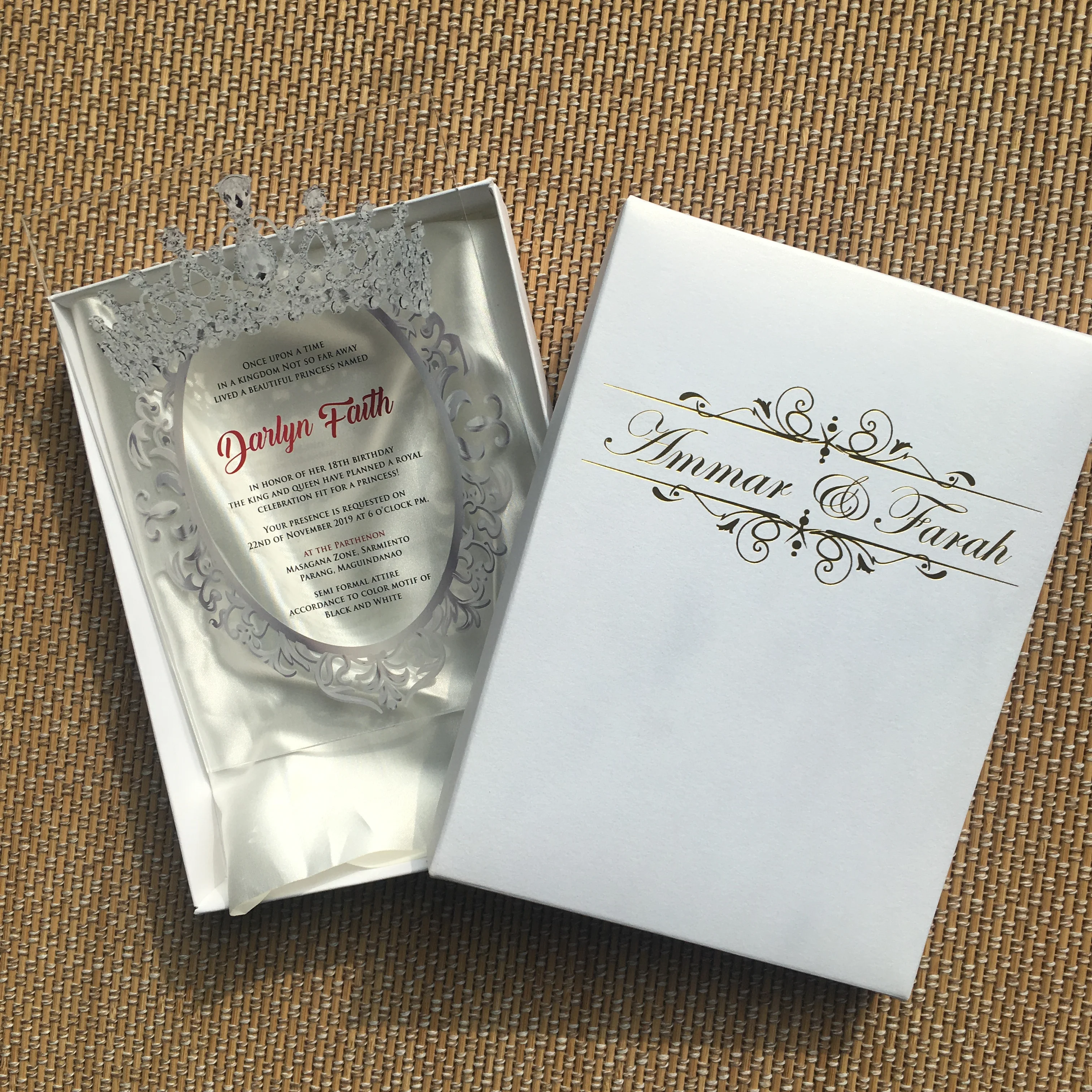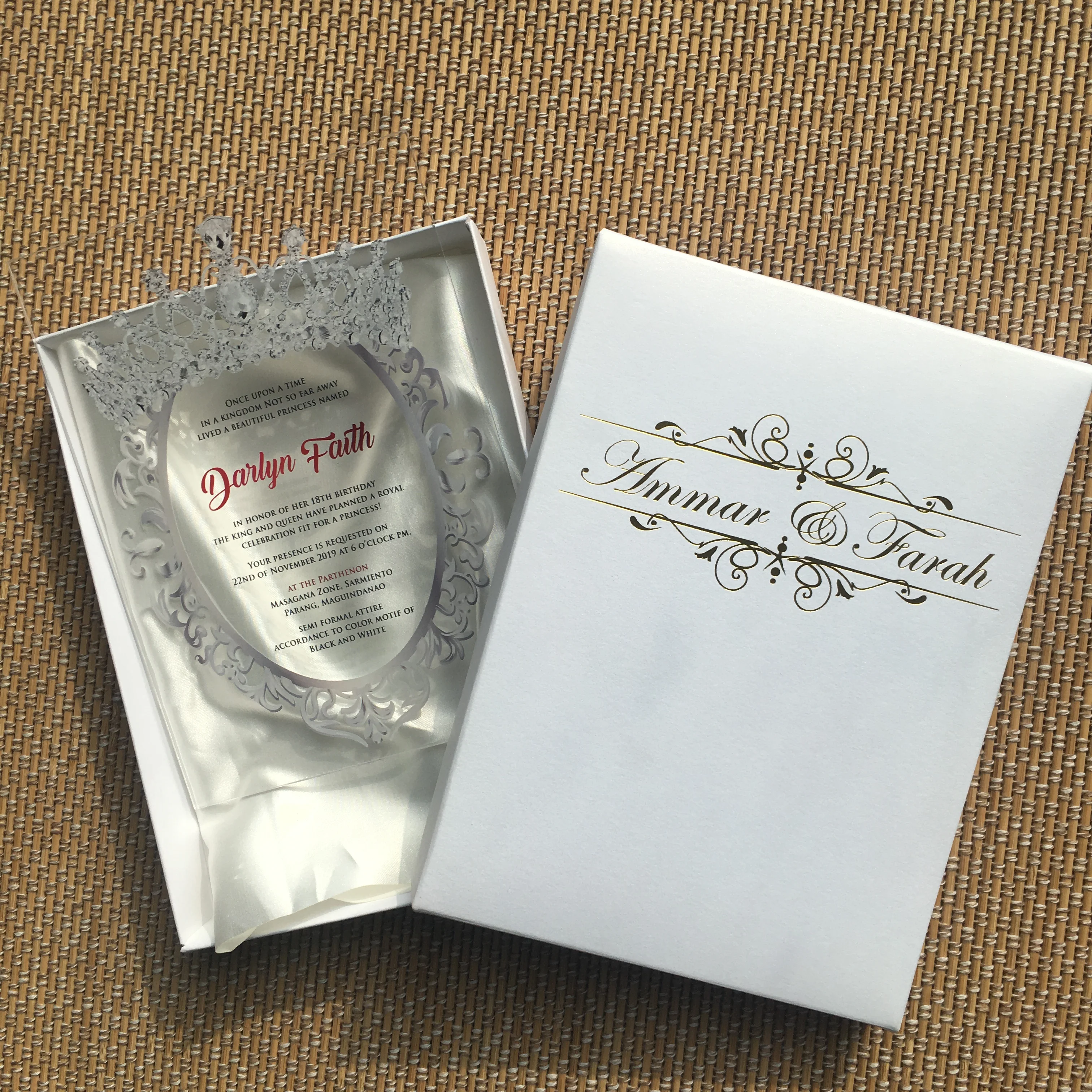 . (Zniżka 0%) Skup Tanie Najbardziej Elegancka Korona Kształt Akrylowe Zaproszenie ślubne Z Tkaniny I Pudełko Cena.
