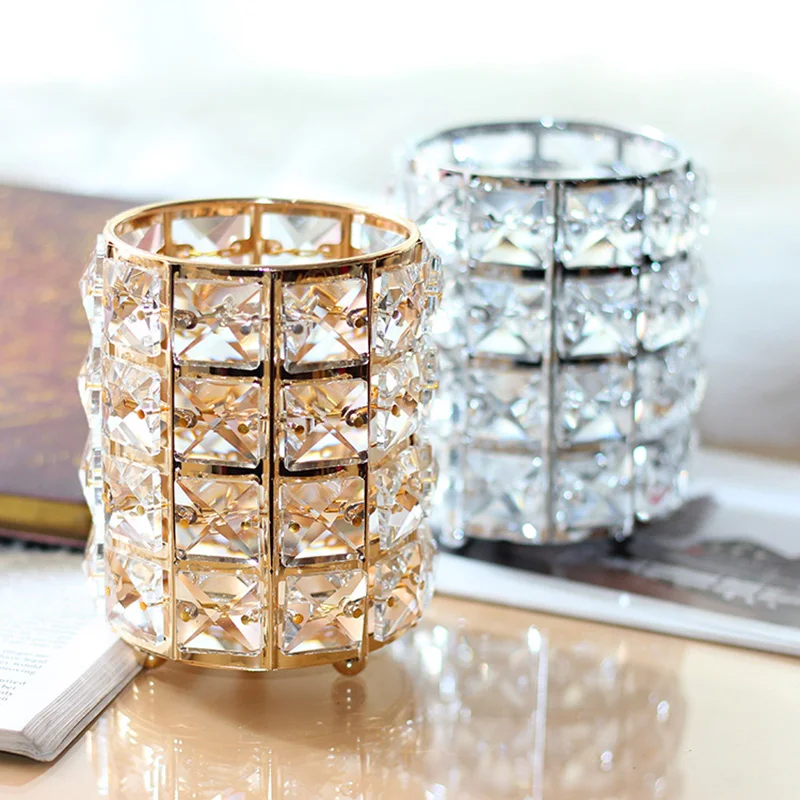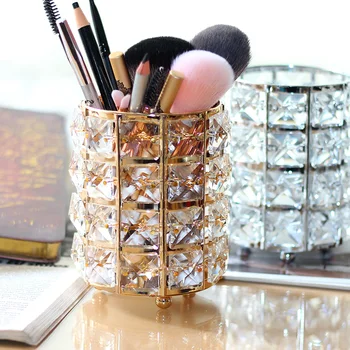 Special Offer Kryształowe Pudełko Do Przechowywania Biżuterii Europa Metalowy Pojemnik Na Pędzle Do Makijażu Tuba Do Brwi Ołówek Organizator Na Przybory Do Makijażu Crystal Brush Beauty Bucket Discount 10% Today!