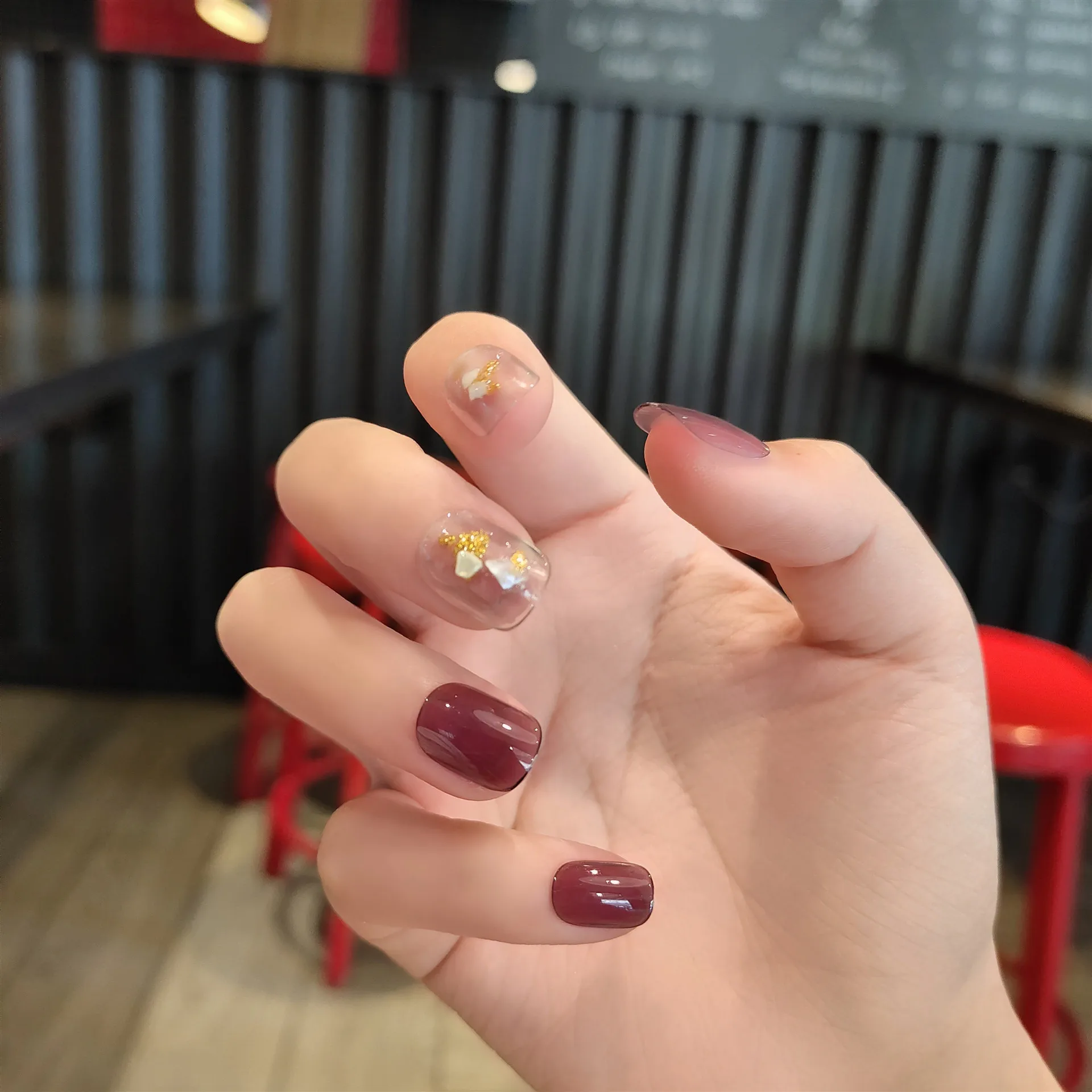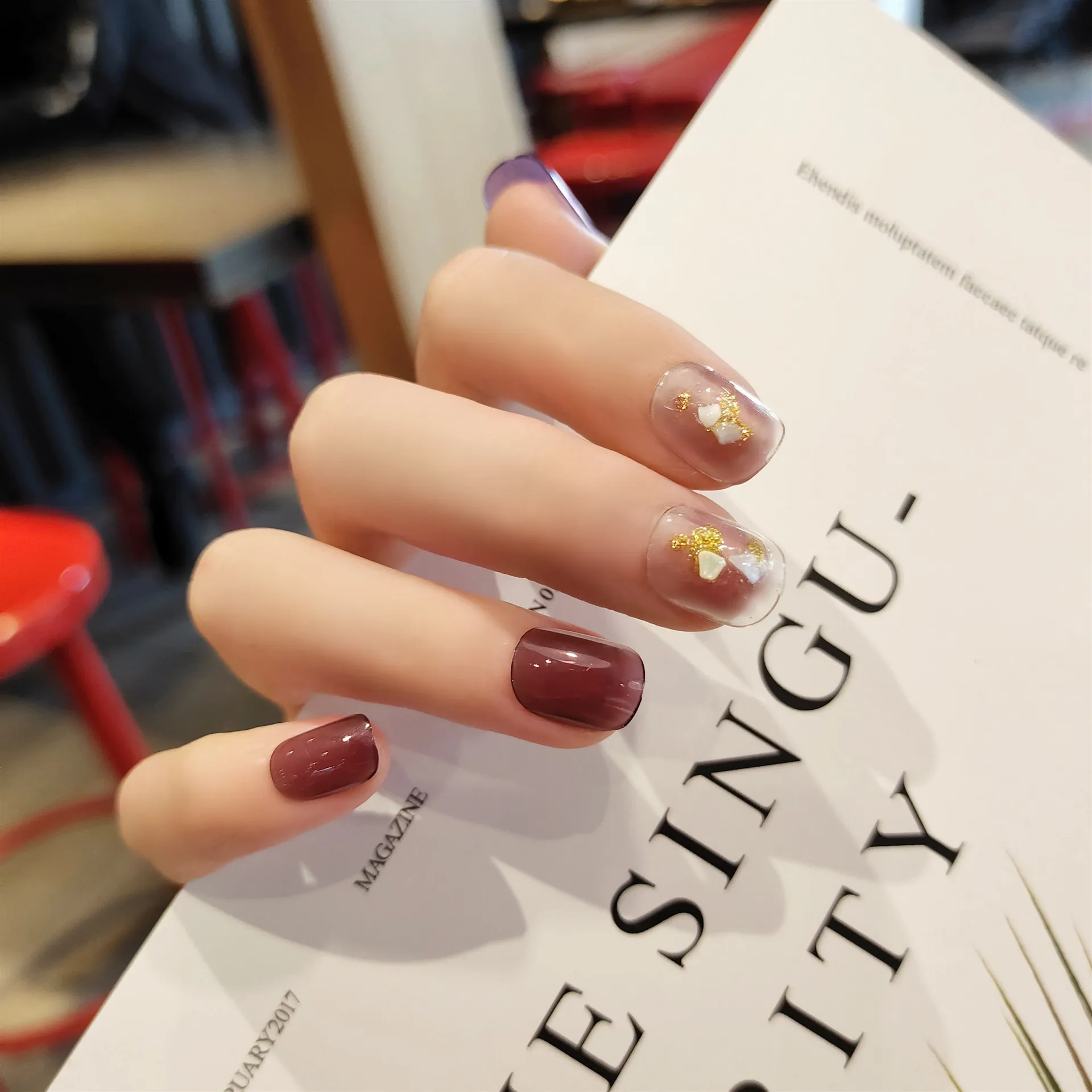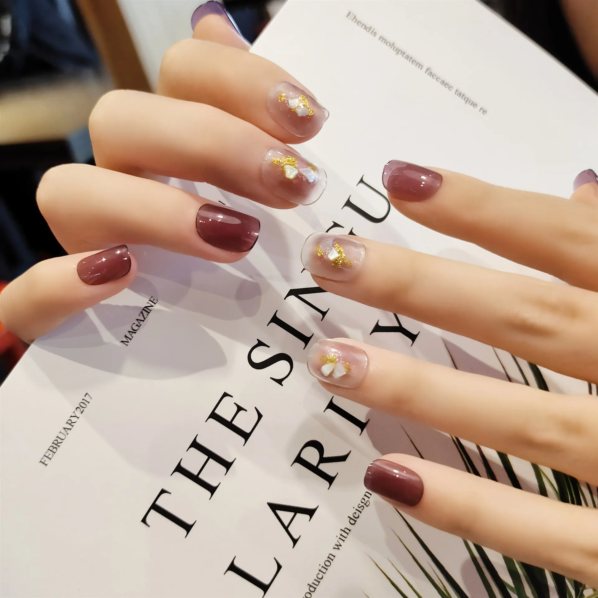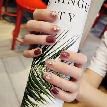 Special Offer 24 Szt. Winogronowy Fioletowy Przezroczysty Skok Kolor Ovel Sztuczne Paznokcie Złoty Szklany Shard Design Noszenie Prasy Na Tipsy Student Nail Art Discount 25% Today!