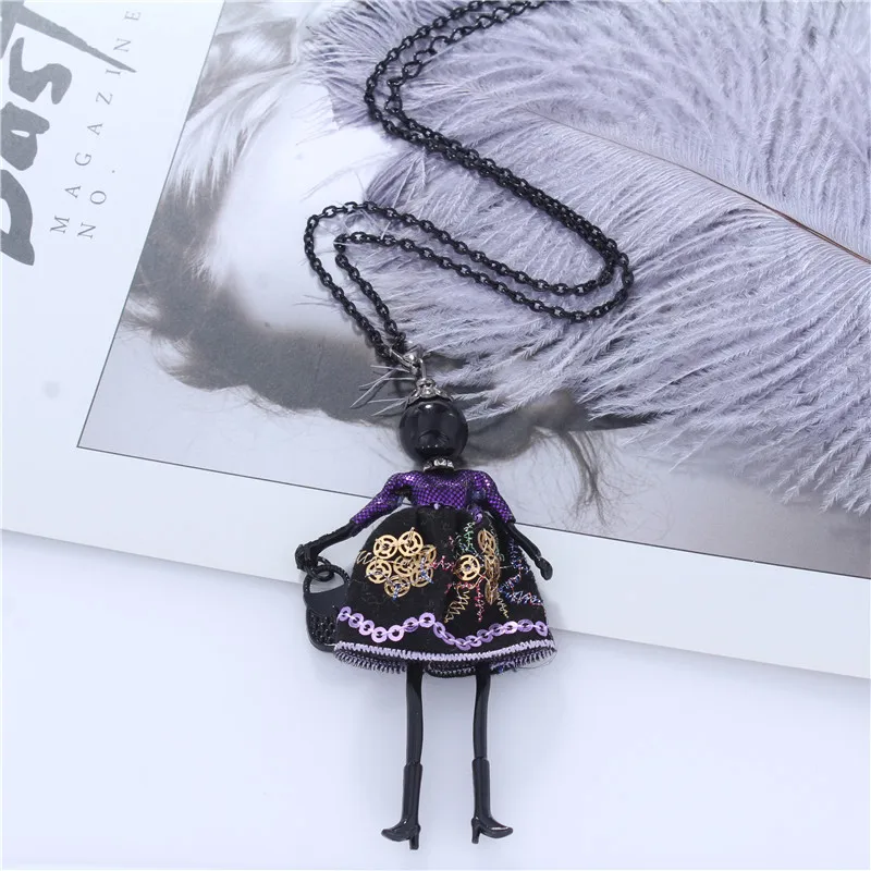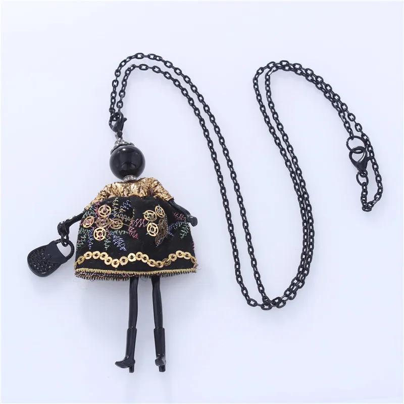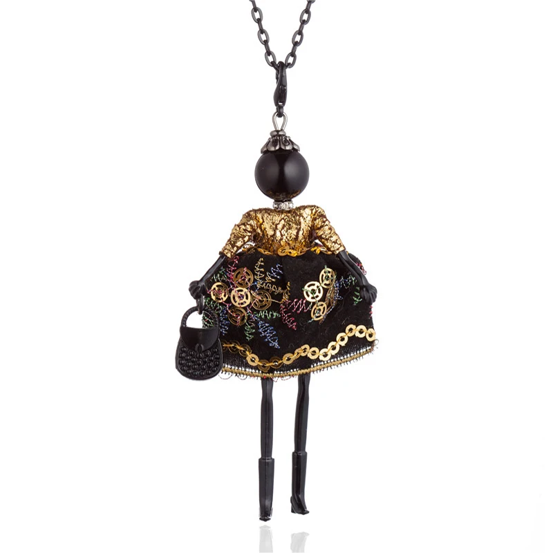 Special Offer Lalka Naszyjnik Dla Kobiet Haft Sukienka Z Cekinami Czarne Aluminium Figurka Lalka Oświadczenie Naszyjnik Dziewczyny Długi łańcuch Sweter Bijoux Femme Discount 36% Today!
