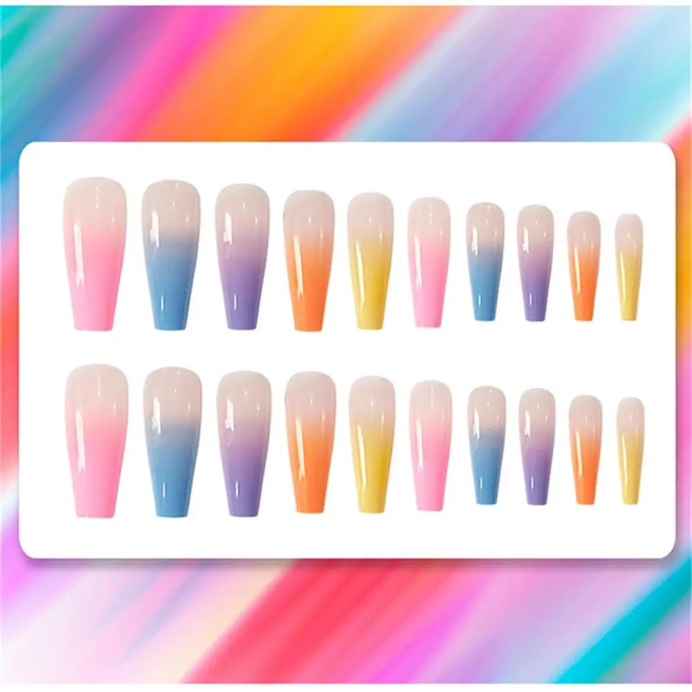 Special Offer Najnowszy Rainbow Gradient Twarde Pudełko Długie Trumny Sztuczne Paznokcie Europejski Baleriny Paznokieć Z Pełnym Pokryciem Art Porady Sztuczny Paznokieć Decor Discount 43% Today!