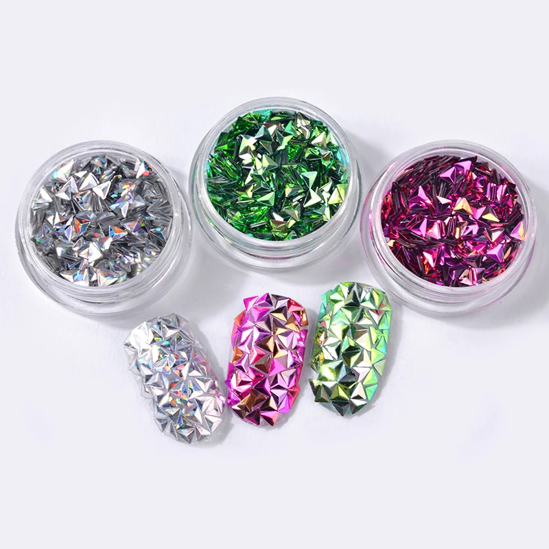 . (Zniżka 10%) Tanie 6 Kolorów Trójkąt Laser Holograficzny Paznokci Cekiny 2.5mm Brokat Kolorowe 3D Paznokcie Sztuka Cekiny Craft Manicure Proszek Do Paznokci Płatki Ceny.