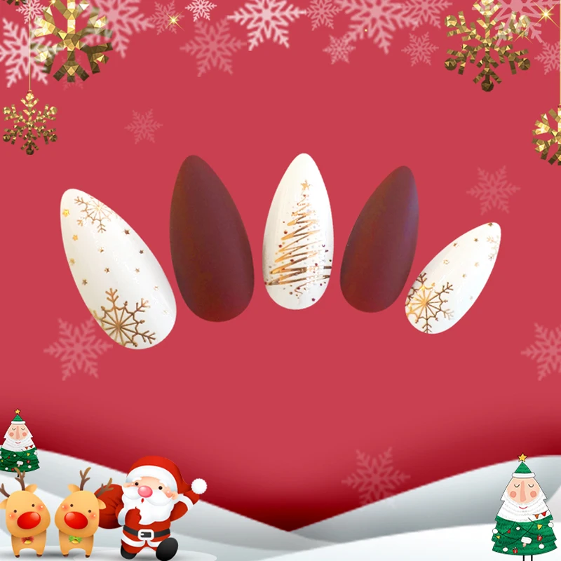 . (Zniżka 20%) Skup 2020 Nowe świąteczne Sztuczne Paznokcie Pełne Francuskie Akrylowe Tipsy Super Błyszczący Efekt Metaliczny Stiletto Manicure Porady Salon Pielęgnacji Paznokci Najtaniej Cena.