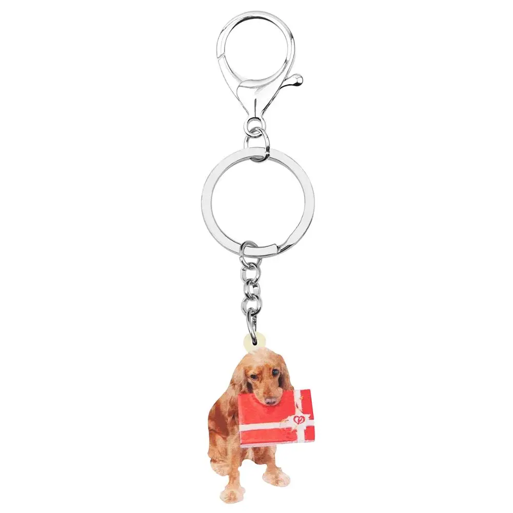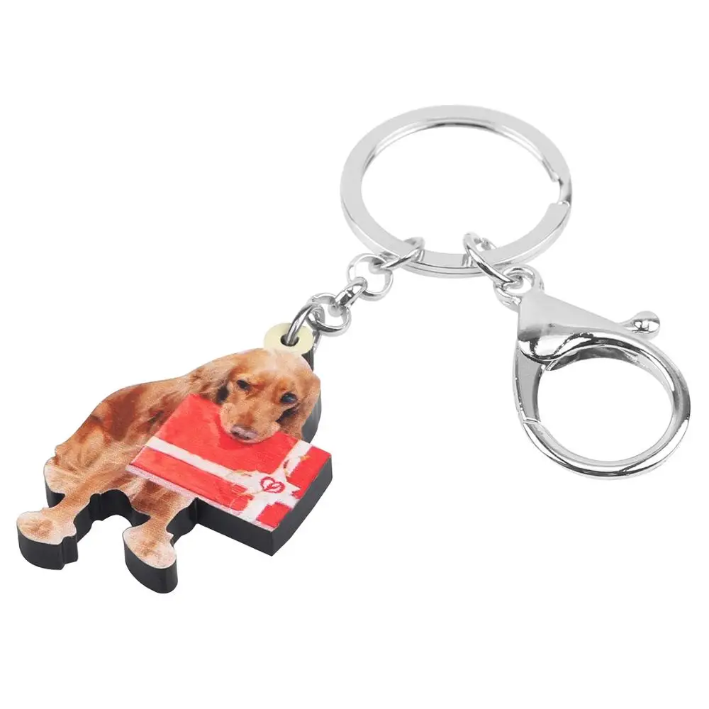 . (Zniżka 45%) Tanie WEVENI Akrylowe Boże Narodzenie Golden Retriever Pies Pudełko Na Prezent Brelok Do Kluczy Zwierząt Breloki Torba Samochodów Kiesy Ozdoby Dla Kobiet Dziewczyny Prezent Ceny.
