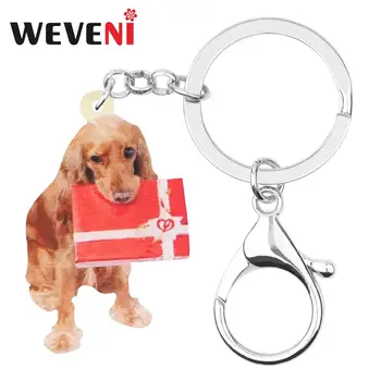 Special Offer WEVENI Akrylowe Boże Narodzenie Golden Retriever Pies Pudełko Na Prezent Brelok Do Kluczy Zwierząt Breloki Torba Samochodów Kiesy Ozdoby Dla Kobiet Dziewczyny Prezent Discount 45% Today!