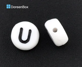 Special Offer DoreenBox Akrylowy Biały Alfabet/litera "U" Płaskie Okrągłe Koraliki Dystansowe 7mm średnica Otworu 1mm 500 Szt. Discount 18% Today!