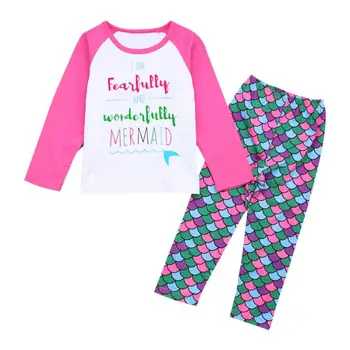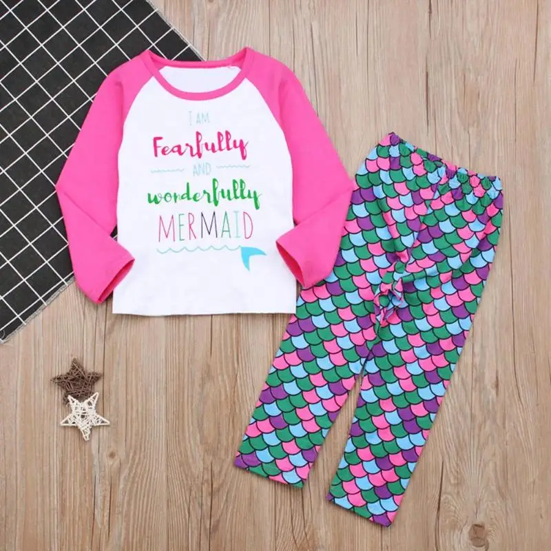 . (Zniżka 21%) Tanie Wiosna/jesień śliczne Dziewczynek Różowy Z Długim Rękawem Wzór W Napisy T-shirt + Spodnie Rybie łuski 2 Sztuk Maluch Dzieci Odzież Zestawy Cena.
