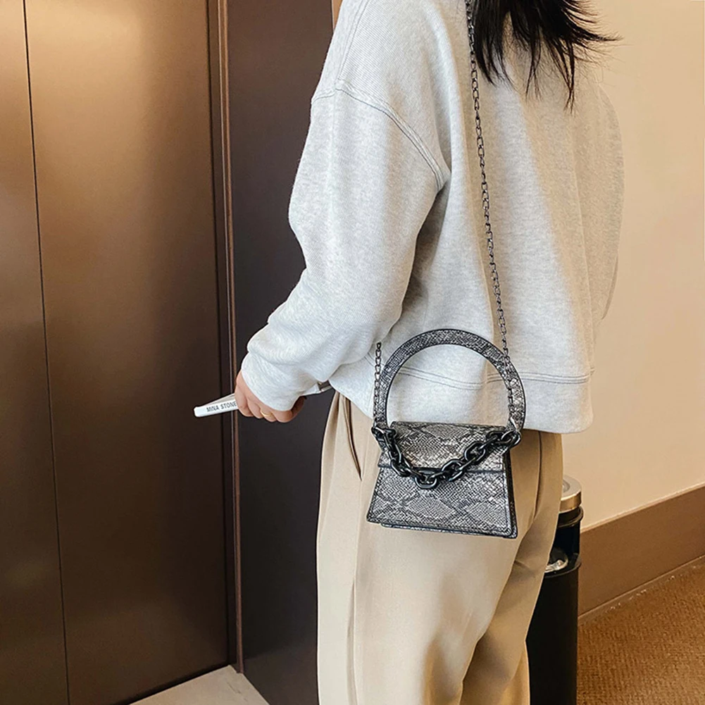Special Offer 2020 Ins Moda Kobiety Skóra Węża Małe Torby Na Ramię PU Skóra Mini Torebka Kobieta Akrylowa Torba łańcuchowa Koło Uchwyt Crossbody Discount 54% Today!