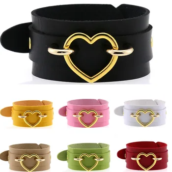 . (Zniżka 23%) Tanie DIEZI Mężczyźni Gothic Harajuku Cosplay Złoty Metal Serce PU Leather Wrap Bransoletka Dla Kobiet W Stylu Vintage Punk Komunikat Bransoletki Biżuteria Cena.