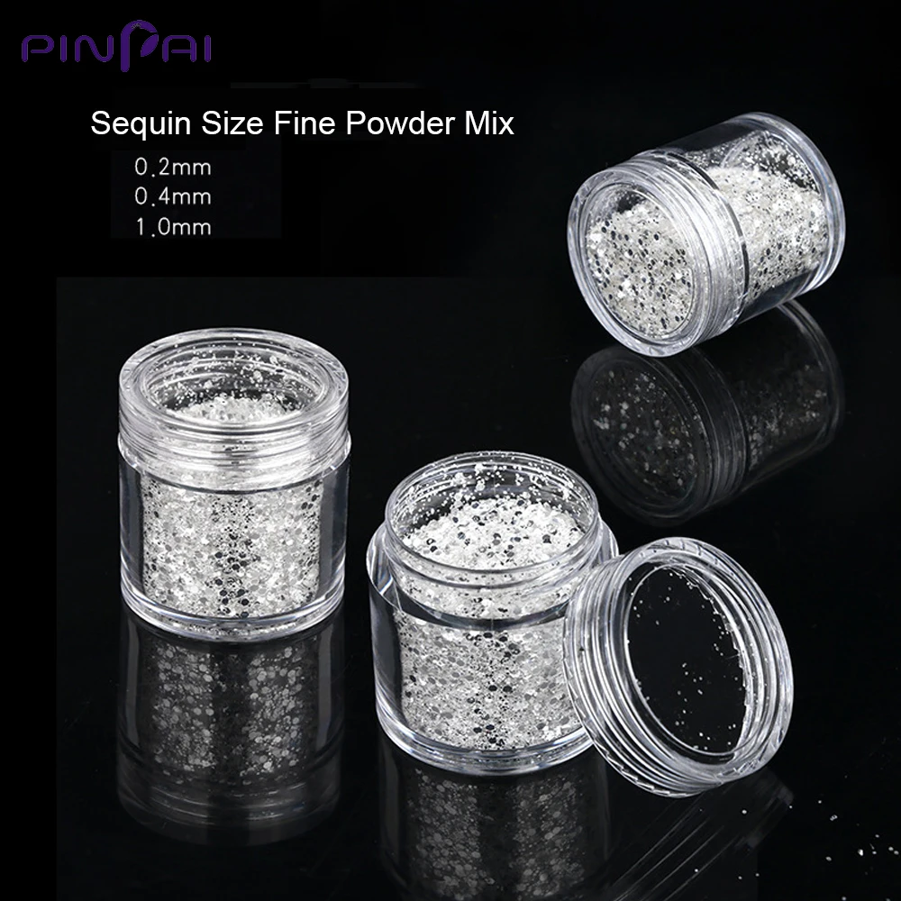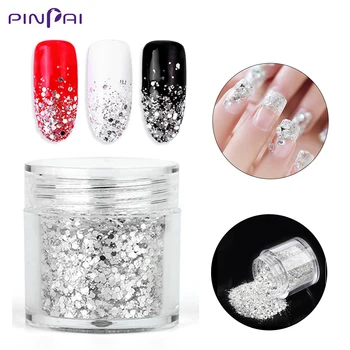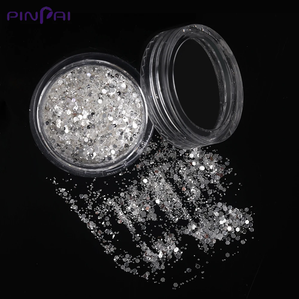 Special Offer Błyszczący Srebrny Mix Rozmiar Nail Art Glitter Powder 3D Sześciokątny Kształt Cekiny Proszek Akrylowy Pył Do Manicure DIY Zdobienie Paznokci Dekoracje Discount 20% Today!