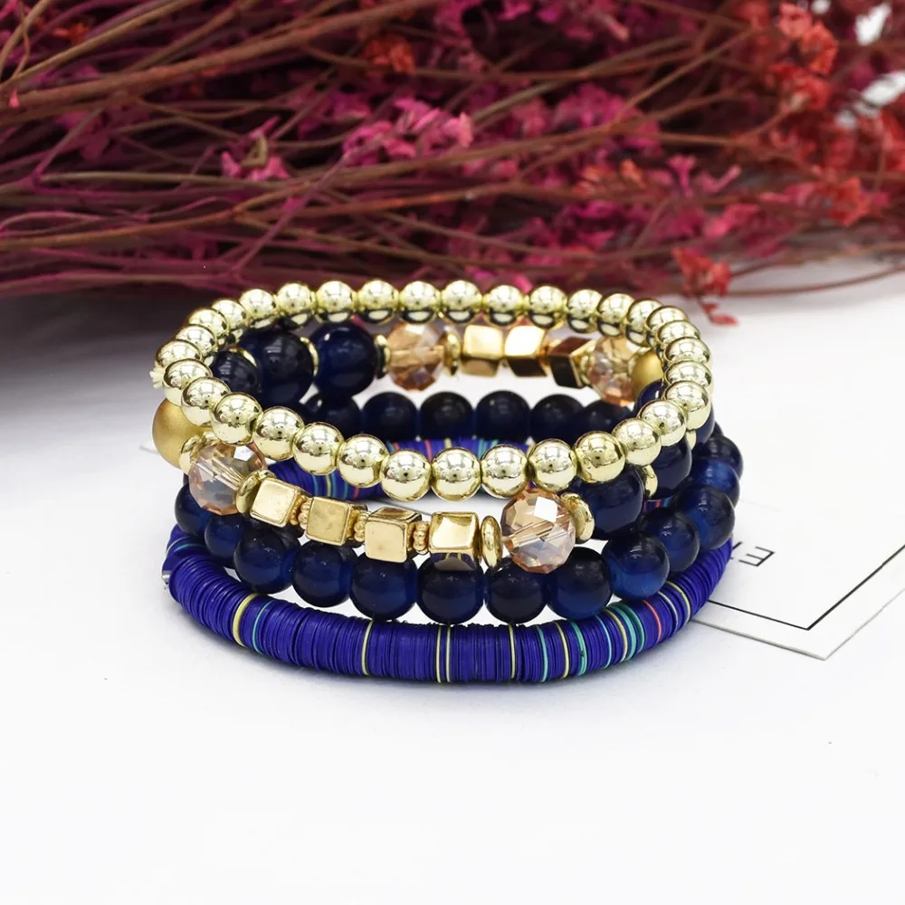 . (Zniżka 45%) Skup Tanie 4 Sztuk/zestaw Boho Muti Warstwy Bransoletki Z Koralików Dla Kobiet Mężczyzn Punk Pleciony Okład Na Rękę Ramię Pulseira Feminina Akrylowa Bransoletka Z Koralików Ceny.