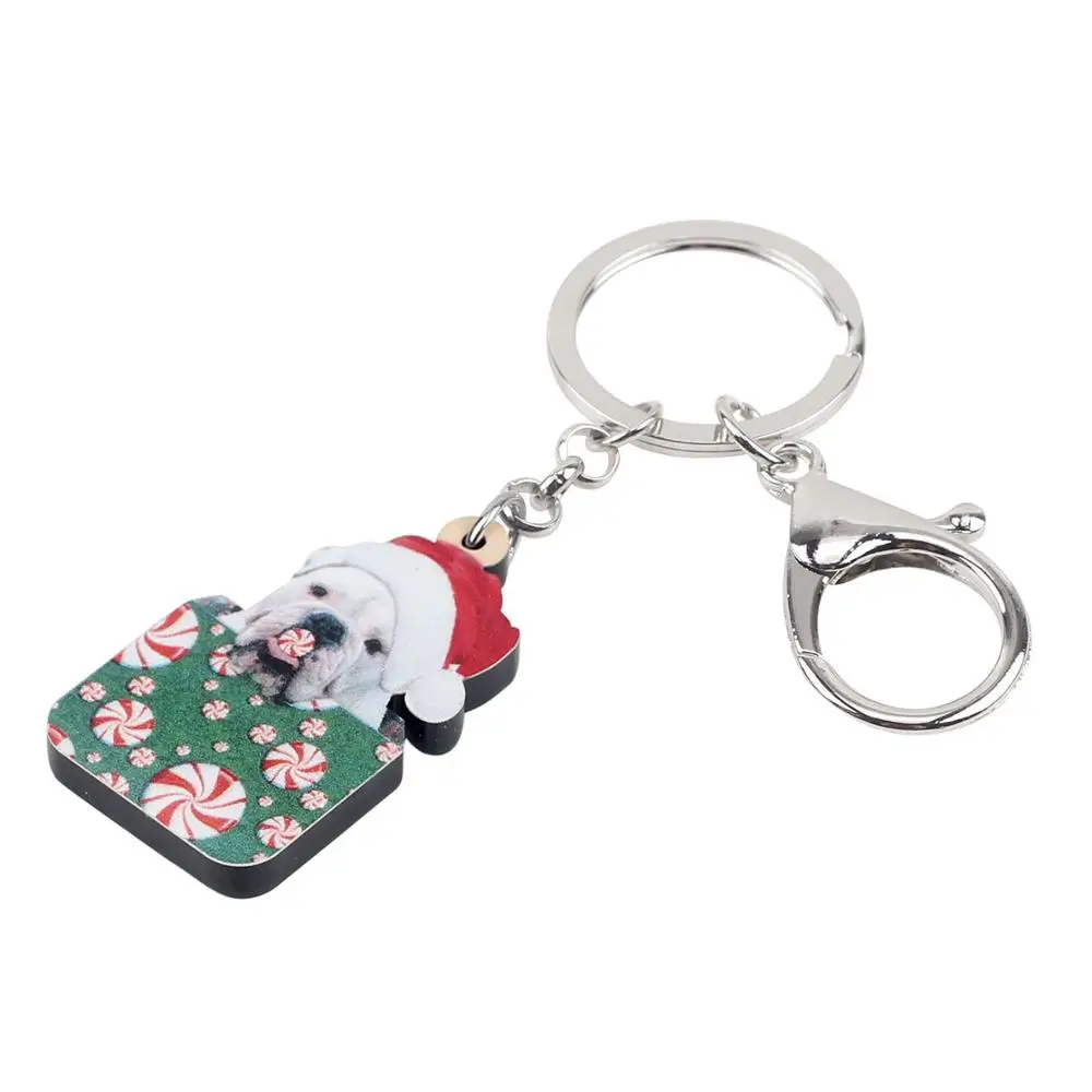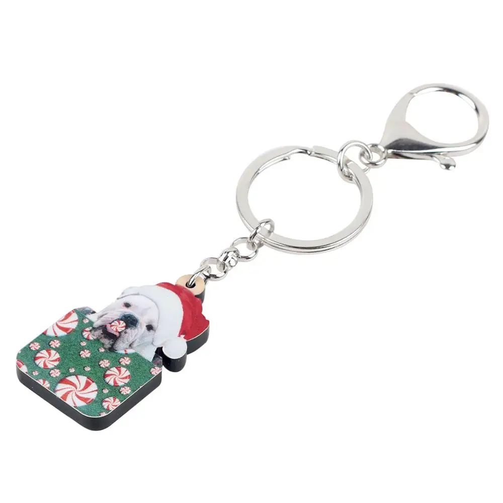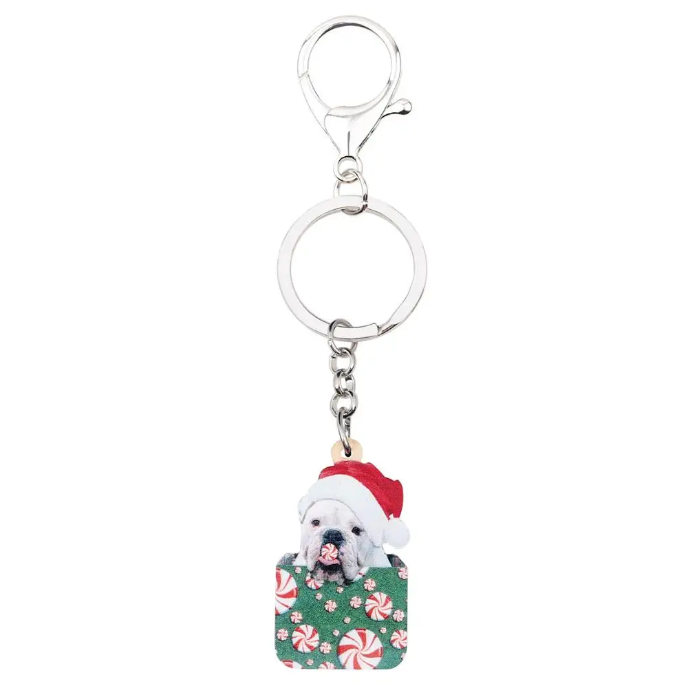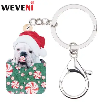 Special Offer WEVENI Akrylowe Boże Narodzenie Buldog Francuski Pies Pudełko Cukierków Brelok Do Kluczy Brelok Do Kluczy Słodkie Biżuteria Dla Zwierząt Domowych Samochód Torba Torebka Brelok Na Dziewczynę Kobiety Discount 45% Today!