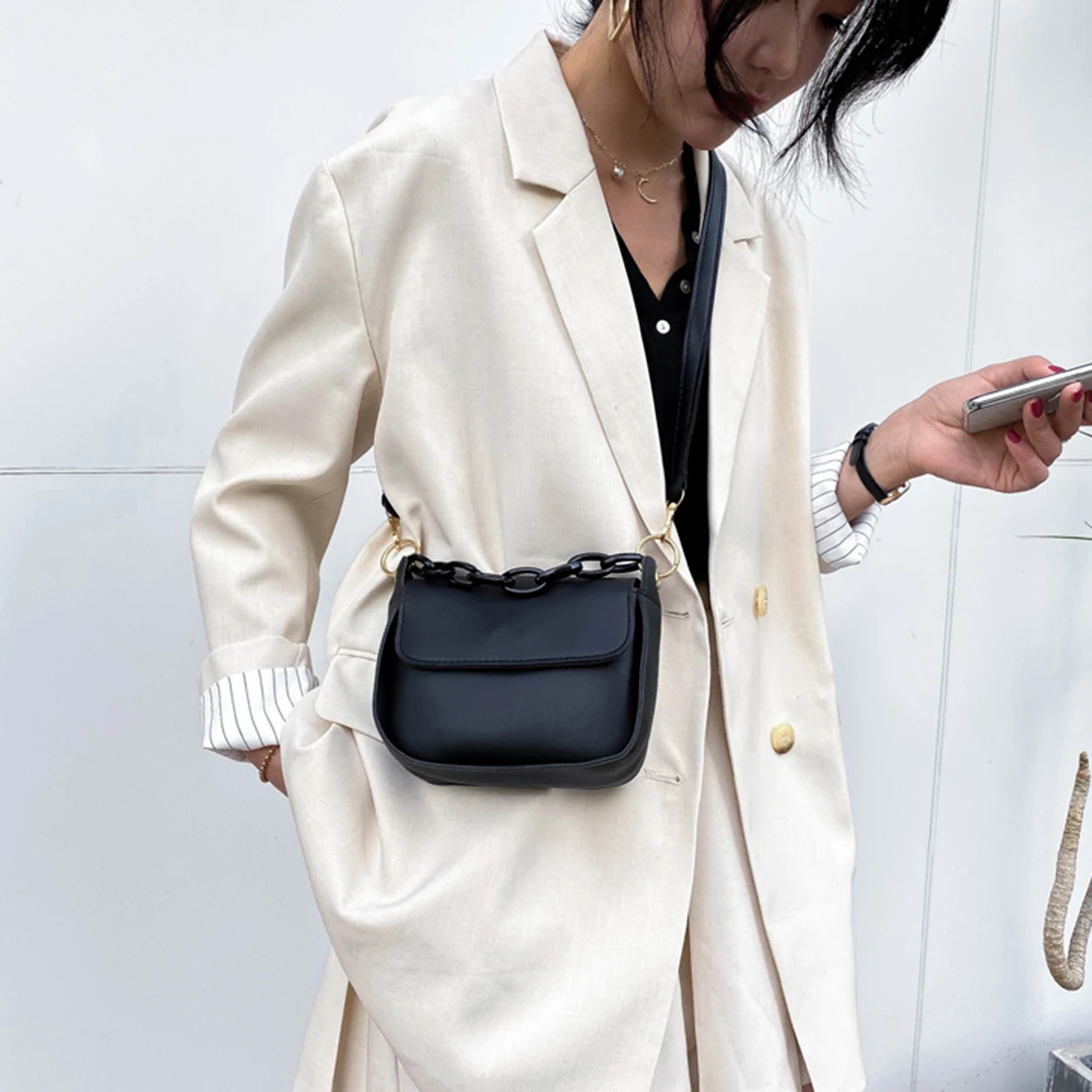 . (Zniżka 50%) Tanie Solid Color Małe Torby Na Ramię Ze Skóry PU Dla Kobiet 2020 Lato Akrylowe łańcucha Projektant Pani Podróży Ramię Messenger Torebki Ceny.